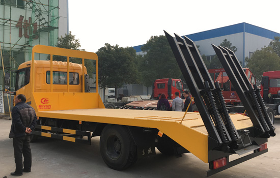 底盤配置:本車采用天錦新款豪華駕駛樓,康明斯6缸180馬力發動機,東風6檔變速箱,4.5噸前橋,9噸后橋,280mm雙層大梁,900R20鋼絲胎,電動門窗、空調、原廠ABS、行車記錄儀。 上裝配置:平板底板橫梁采用100*100*5mm方管,底板采用5mm或8mm花紋板,帶加密斜支撐,爬梯采用雙彈簧加強型設計,采用三道筋+雙彈簧加固焊接,可選裝液壓爬梯或折疊加長型液壓爬梯,斜坡處帶后支腿,平板有效板長6.8米(含斜坡),板寬2.5米(可選裝帶左右加寬伸展),可以選擇貨箱帶欄板設計,15噸及15噸以下噸位挖機首選車型! 該車公告+燃油+環保齊全,全國上戶無憂。