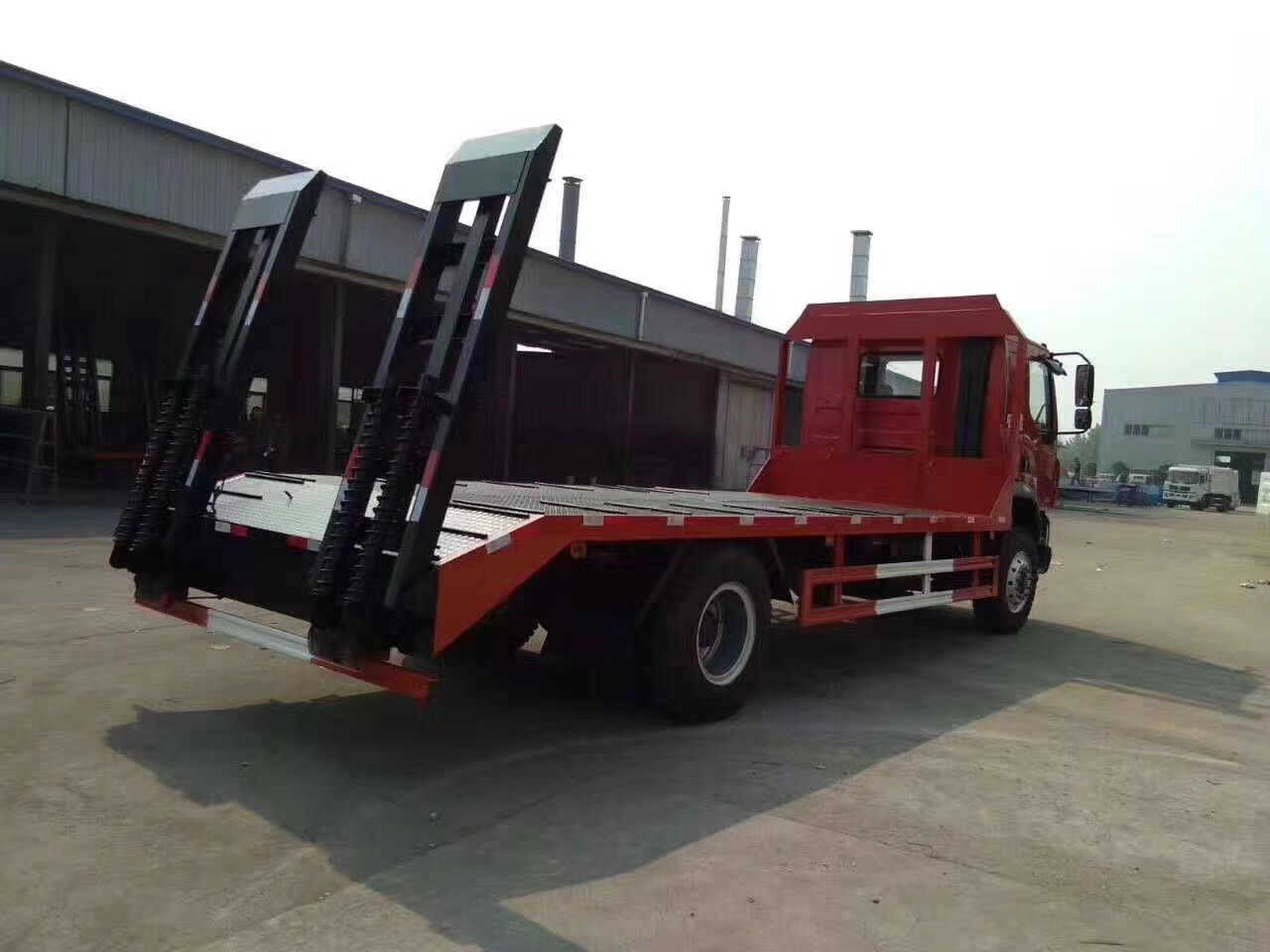 底盤配置:本車采用柳汽乘龍M3新款豪華駕駛樓(原廠空調、電動門窗、動轉、ABS、行車記錄儀),玉柴6缸180馬力發動機/玉柴6缸200馬力發動機兩種可選,陜齒8檔變速箱帶高低速,5噸前橋,10噸后橋,300mm雙層大梁,1000R20鋼絲胎。 上裝配置:平板底板橫梁采用100*100*5mm方管,底板采用5mm或8mm花紋板,帶加密斜支撐,爬梯采用雙彈簧加強型設計,采用三道筋+雙彈簧加固焊接,可選裝液壓爬梯或折疊加長型液壓爬梯,斜坡處帶后支腿,平板有效板長6.8米(含斜坡),板寬2.5米(可選裝帶左右加寬伸展),可以選擇貨箱帶欄板設計,18噸及15噸以下噸位挖機首選車型! 該車公告+燃油+環保齊全,全國上戶無憂。