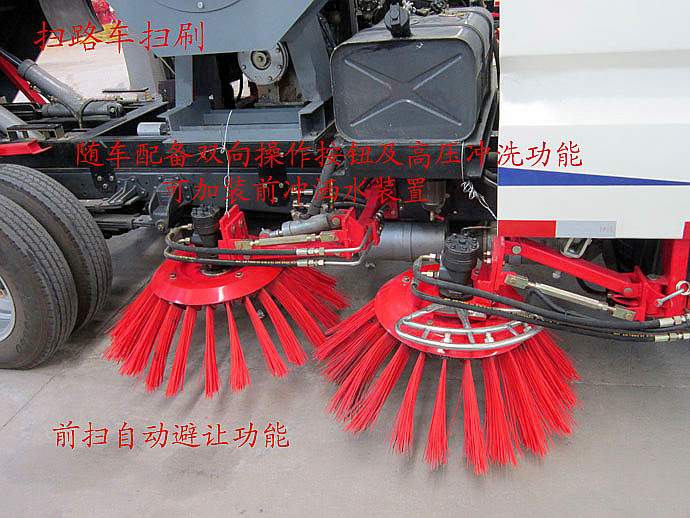 我們產品優勢: 1.采用吸掃結合的方式收集垃圾,濕式除塵、電液控制,液壓傾翻卸料的作業方式對路面進行清掃作業;能清掃樹葉、果皮、礦泉水瓶、易拉罐、沙石金屬碎屑、粉塵、煤渣等工業生活垃圾,工作效率為人工清掃方式的8-40倍; 2.采用副發動機專門驅動風機和液壓系統,動力強勁,保證行駛過程中能繼續工作,保證清掃過程的連續性; 3.中置四掃盤+進口液壓馬達驅動,穩定可靠,前掃盤有噴霧壓塵系統,掃盤遇障防碰撞自動防避讓功能及復位功能,掃刷臂轉動機構使用高新耐磨工程隔套;掃盤轉速可根據各種不同清掃路況,調整轉速,能保證在各種污染狀況下都有良好的清掃效果; 4.作業方式為中置四盤刷+后置吸嘴,便于清掃裝置與吸嘴的調整和維護,可實現清掃路面及吸塵作業模式,分左掃、右掃及全掃三種; 5.后置可隨路面自動找平的全浮動吸嘴,清掃效果好,進口原料制成的外翻式吸塵管,可防止吸塵管被劃破、凍裂,增加使用壽命; 6.采用先進、高效的大型免維護臺式專用風機,風量大;精密冷彎無縫液壓油管,內壁無氧化雜質,保證液壓油清潔,不堵閥; 7.副發動機與風機之間傳動裝置設有自動離合器,保證副發動機空載啟動或停機時與風機的自動脫離,提高副發動機的穩定性; 8.法國施耐德控制開關,臺灣液壓閥組,LED尾部警示燈,手動泵應急系統; 9.水箱,垃圾箱均為不銹鋼材質,耐腐蝕、容積大,內層光滑不銹,無骨架,卸料方便,便于清洗; 10.可選裝倒車影像,作業監控,前沖后灑,前置綠化炮,后噴霧,手持吸塵管,手持高壓卷盤水槍,垃圾箱自潔裝置,雪鏟等。