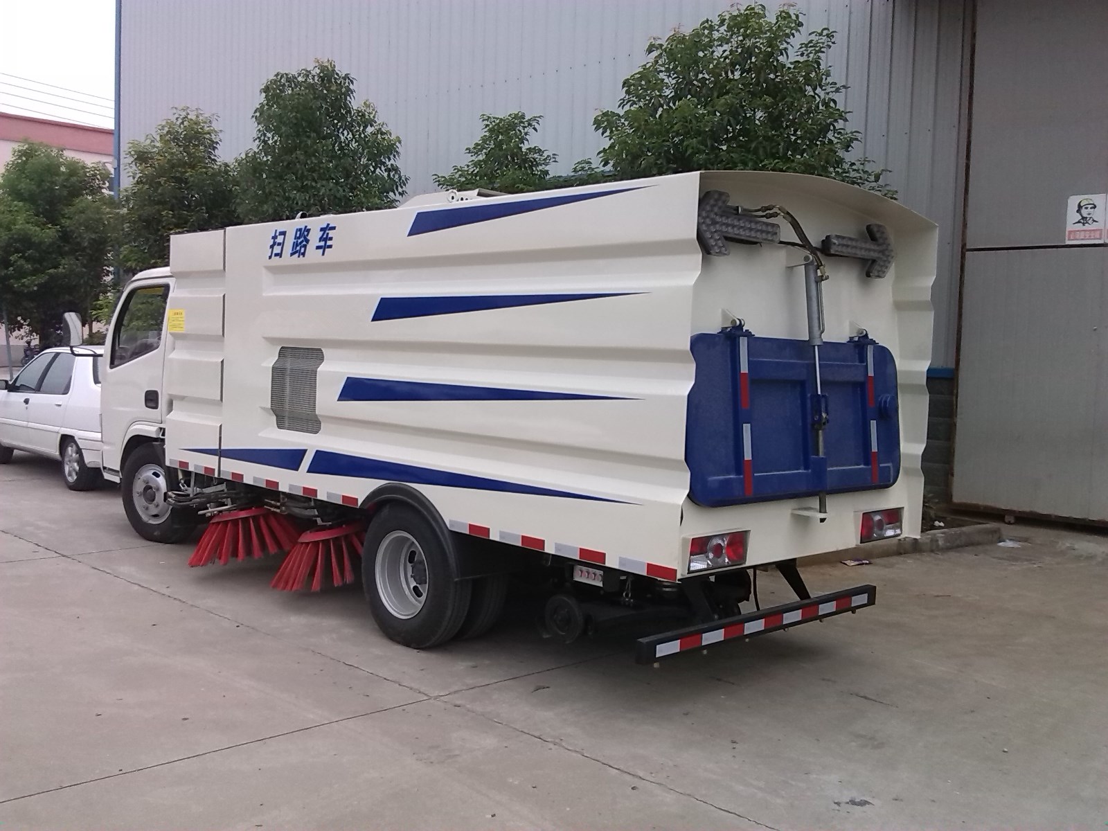 我們產品優勢: 1.采用吸掃結合的方式收集垃圾,濕式除塵、電液控制,液壓傾翻卸料的作業方式對路面進行清掃作業;能清掃樹葉、果皮、礦泉水瓶、易拉罐、沙石金屬碎屑、粉塵、煤渣等工業生活垃圾,工作效率為人工清掃方式的8-40倍; 2.采用副發動機專門驅動風機和液壓系統,動力強勁,保證行駛過程中能繼續工作,保證清掃過程的連續性; 3.中置四掃盤+進口液壓馬達驅動,穩定可靠,前掃盤有噴霧壓塵系統,掃盤遇障防碰撞自動防避讓功能及復位功能,掃刷臂轉動機構使用高新耐磨工程隔套;掃盤轉速可根據各種不同清掃路況,調整轉速,能保證在各種污染狀況下都有良好的清掃效果; 4.作業方式為中置四盤刷+后置吸嘴,便于清掃裝置與吸嘴的調整和維護,可實現清掃路面及吸塵作業模式,分左掃、右掃及全掃三種; 5.后置可隨路面自動找平的全浮動吸嘴,清掃效果好,進口原料制成的外翻式吸塵管,可防止吸塵管被劃破、凍裂,增加使用壽命; 6.采用先進、高效的大型免維護臺式專用風機,風量大;精密冷彎無縫液壓油管,內壁無氧化雜質,保證液壓油清潔,不堵閥; 7.副發動機與風機之間傳動裝置設有自動離合器,保證副發動機空載啟動或停機時與風機的自動脫離,提高副發動機的穩定性; 8.法國施耐德控制開關,臺灣液壓閥組,LED尾部警示燈,手動泵應急系統; 9.水箱,垃圾箱均為不銹鋼材質,耐腐蝕、容積大,內層光滑不銹,無骨架,卸料方便,便于清洗; 10.可選裝倒車影像,作業監控,前沖后灑,前置綠化炮,后噴霧,手持吸塵管,手持高壓卷盤水槍,垃圾箱自潔裝置,雪鏟等。
