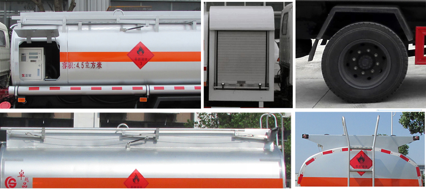 | 配置 | 1、運輸介質(zhì): 柴油/煤油/汽油,密度:830/800/700千克/立方米; 類項號:3;罐體有效容積4.5立方米;罐體外形尺寸(長壯ぶ嶙短軸)(mm):①加油機側(cè)裝在車架左側(cè)或右側(cè):3800?600?100;②加油機裝在罐體前部:3800(加油機倉長800)?750?250;兩種罐體尺寸的整備質(zhì)量差異在3%以內(nèi),故申報一組整備質(zhì)量。罐體上部選裝無上走道,選裝爬梯結(jié)構(gòu),選裝方形或弧形擋泥板。文字噴涂位置可變化。工具箱可裝在車架左側(cè)或右側(cè)且安裝位置可前后變化。2、側(cè)/后防護材料為Q235,側(cè)防護螺栓連接,后防護焊接,截面尺寸120?0mm,下邊緣離地高500mm。加油機型號及生產(chǎn)企業(yè):BL1111Z/珠海市貝林加油設(shè)備有限公司中山分公司,HS1812B/托肯恒山科技(廣州)有限公司,SKES-1112/恒和嘉華科技有限公司(上海伯萊機械有限公司),SK20QF-111A、SK20QF-222A/鄭州三金石油設(shè)備制造有限公司,CS20D1110F/正星科技有限公司,JSK-70B1121CZ,JSK-70B1121C,JSK45B1121C/穩(wěn)恩佳力佳(北京)石油化工設(shè)備有限公司, ZH6444/佛山市眾澤機電科技有限公司, XTST121BF1/邢臺正潤通科技發(fā)展有限公司。3、該車適用于危險品運輸。裝配限速裝置,限速79km/h。僅選用消聲器前置、限速裝置、前輪盤式制動及子午線輪胎的底盤;該車應(yīng)裝具有衛(wèi)星定位功能的行駛記錄儀。ABS系統(tǒng)型號為XH-KQ4S4M-E01,生產(chǎn)企業(yè)為廣州市西合汽車電子裝備有限公司。 | ||